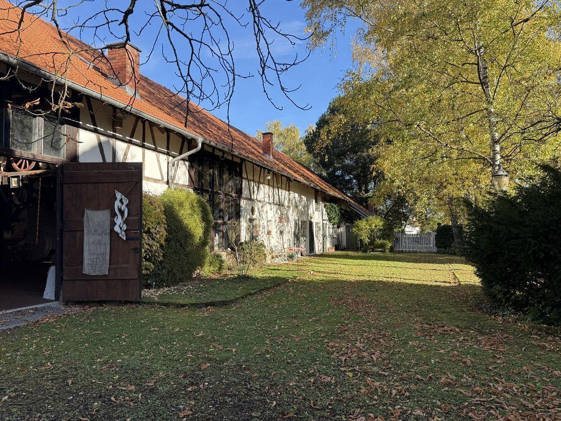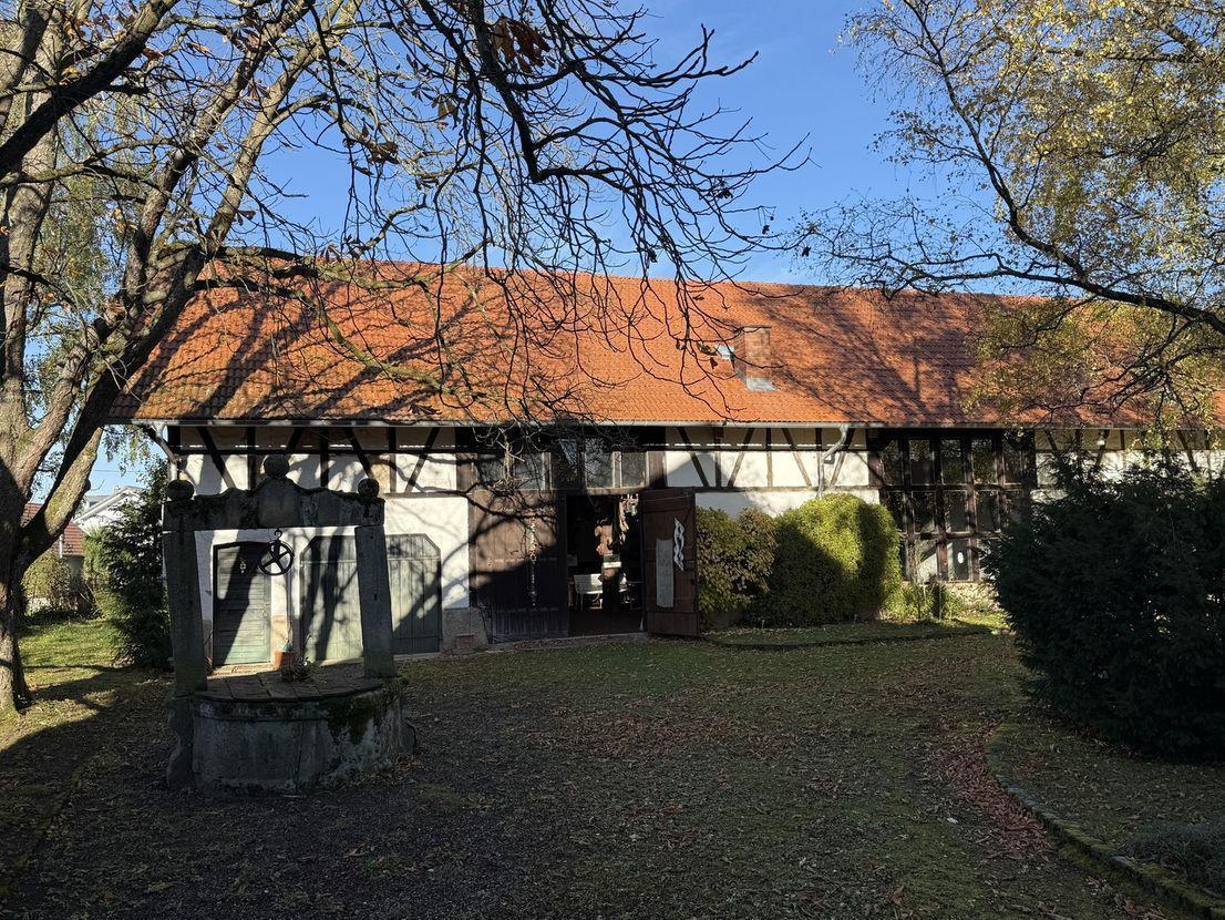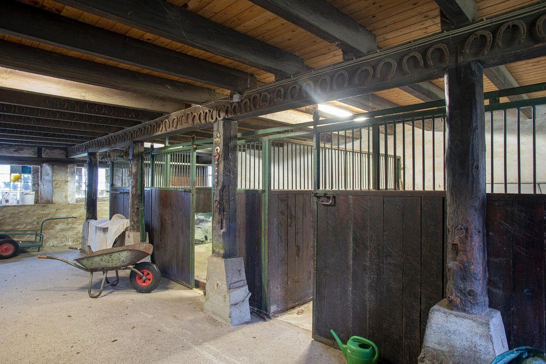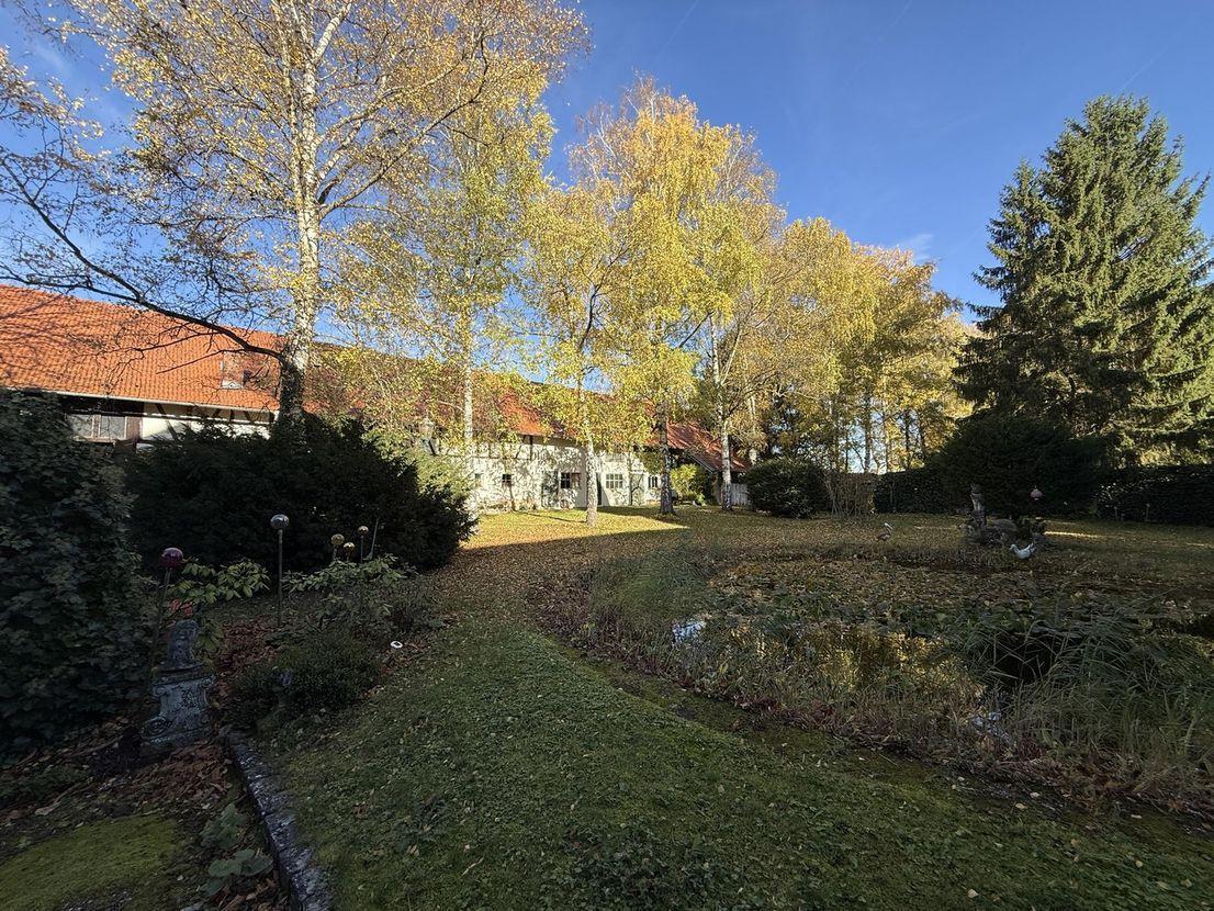 - Repräsentatives Schloss auf einem nicht einsehbaren Grundstück mit vielfältig nutzbarer Scheune, Pferdeboxen, Seerosenteich, Brunnen, altem Baumbestand. Der Reitplatz und die Pferdekoppeln auf den angrenzenden Bauplätzen (Bebauungsplan im Änderungsverfahren), können zusätzlich erworben werden. Das historische Schlossgebäude aus dem 17. Jahrhundert hat ein massives Erdgeschoß mit 90 cm dicken Mauern, OG Fachwerk, DG mit Walmdach. Die Aufteilung, die Raumgrößen und die Raumhöhen unterstreichen den Charakter eines großzügigen adligen Wohnsitzes. Im Erdgeschoss befinden sich das Wohnzimmer mit über 60 qm Fläche, die Wirtschaftsräume, das Esszimmer, ein großzügiger Flur mit Gäste-WC, Ausgänge zum Garten und ein Musik-/ Gästezimmer. Im Obergeschoss gibt es einen Arbeitsbereich mit Bibliothek, vier Schlafzimmer und zwei Bäder. Allein im Schlossgebäude selbst, wie auch in den vorhandenen Nebengebäuden bestehen großzügige Ausbaureserven, die neben Wohnnutzungen vielfältige Optionen für freiberufliche, gewerbliche oder freizeitbezogene Nutzungen anbieten. Gerade eine Kombination aus privater Wohnnutzung und gewerblicher Nutzung könnte aufgrund des bestehenden Denkmalschutzes eventuell steuerlich höchst interessant gestaltet werden. Reden Sie darüber einmal mit Ihrem Steuerberater. Neben dem Herrenhaus finden sich auf dem Schlossgelände die langgestreckte Scheune mit riesigem Saal und offenem Kamin, die "Kutscherstube" mit offenem Kamin, zwei großzügige Pferdeboxen, eine Remise, eine Werkstatt und eine sehr geräumige Garagenhalle, das ehemalige kleine Waschhaus und ein Hühnerhaus. Der Schlossgarten ist ein gepflegtes Schmuckstück mit altem Baumbestand und Seerosenteich, der aus dem Brunnen mit Wasser versorgt wird. Im hinteren Bereich bei den zusätzlichen Bauplätzen befinden sich aktuell ein Reitplatz, Wiesen und Koppeln. Sofern die Bauplätze erworben, aber nicht bebaut werden, kann dies ggf. so belassen werden. Garten, Keller, Vollbad, Einbauküche, Gäste-WC, Kamin, Teppichboden, Fliesen