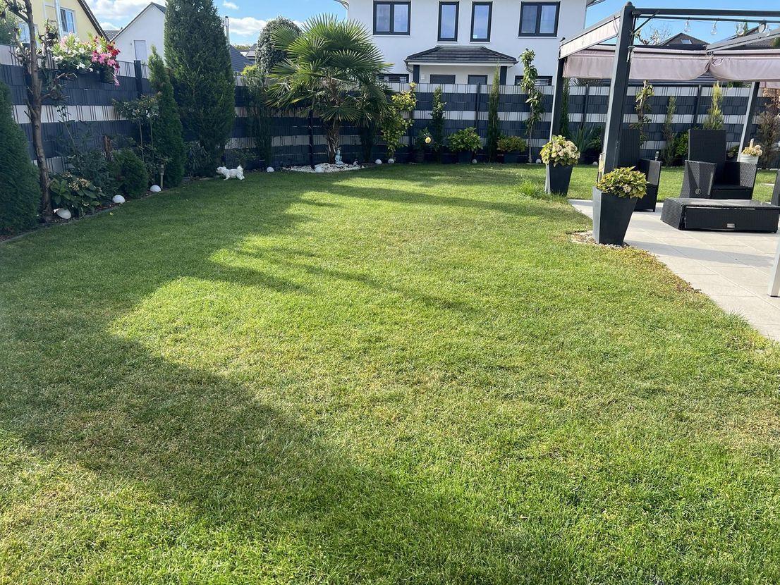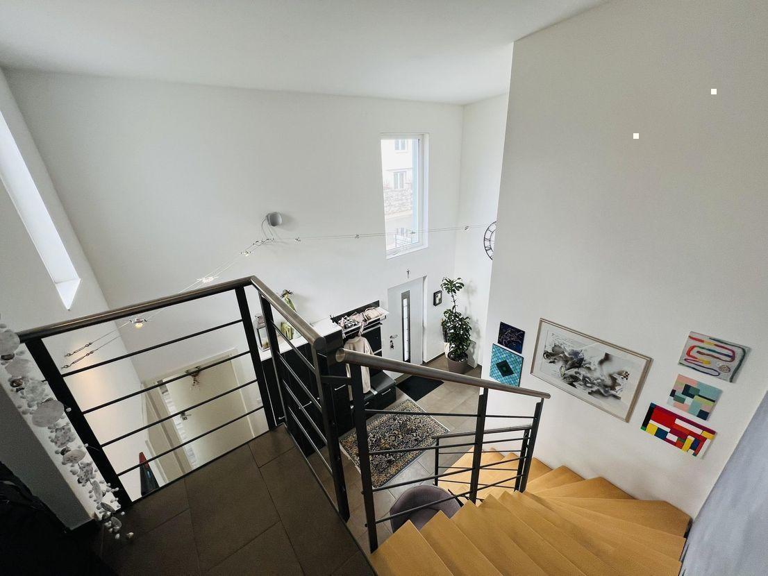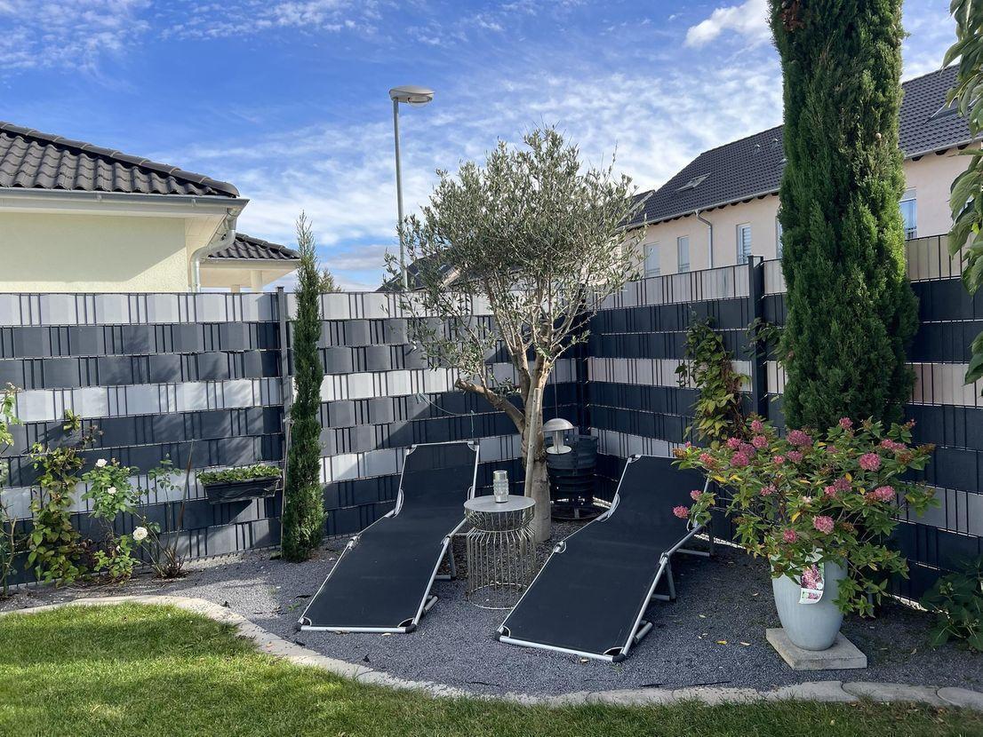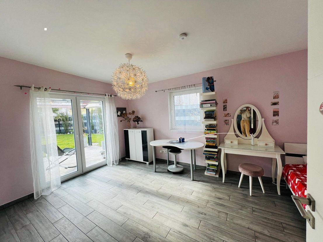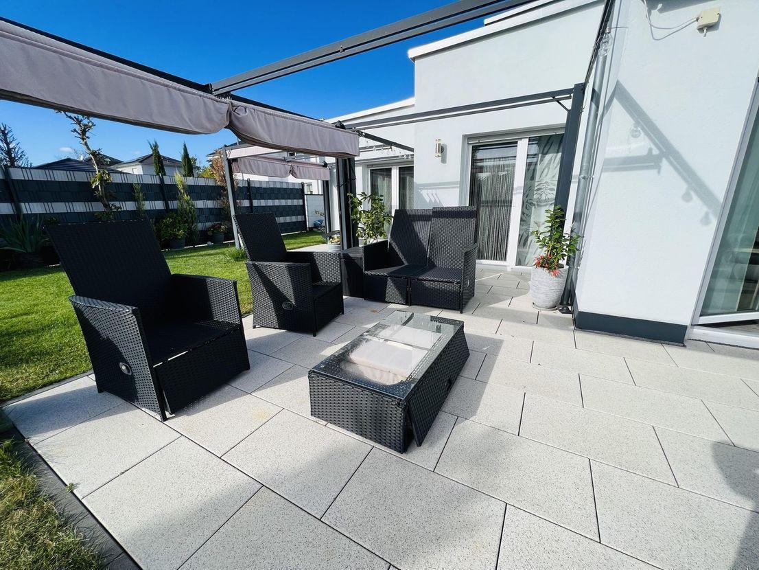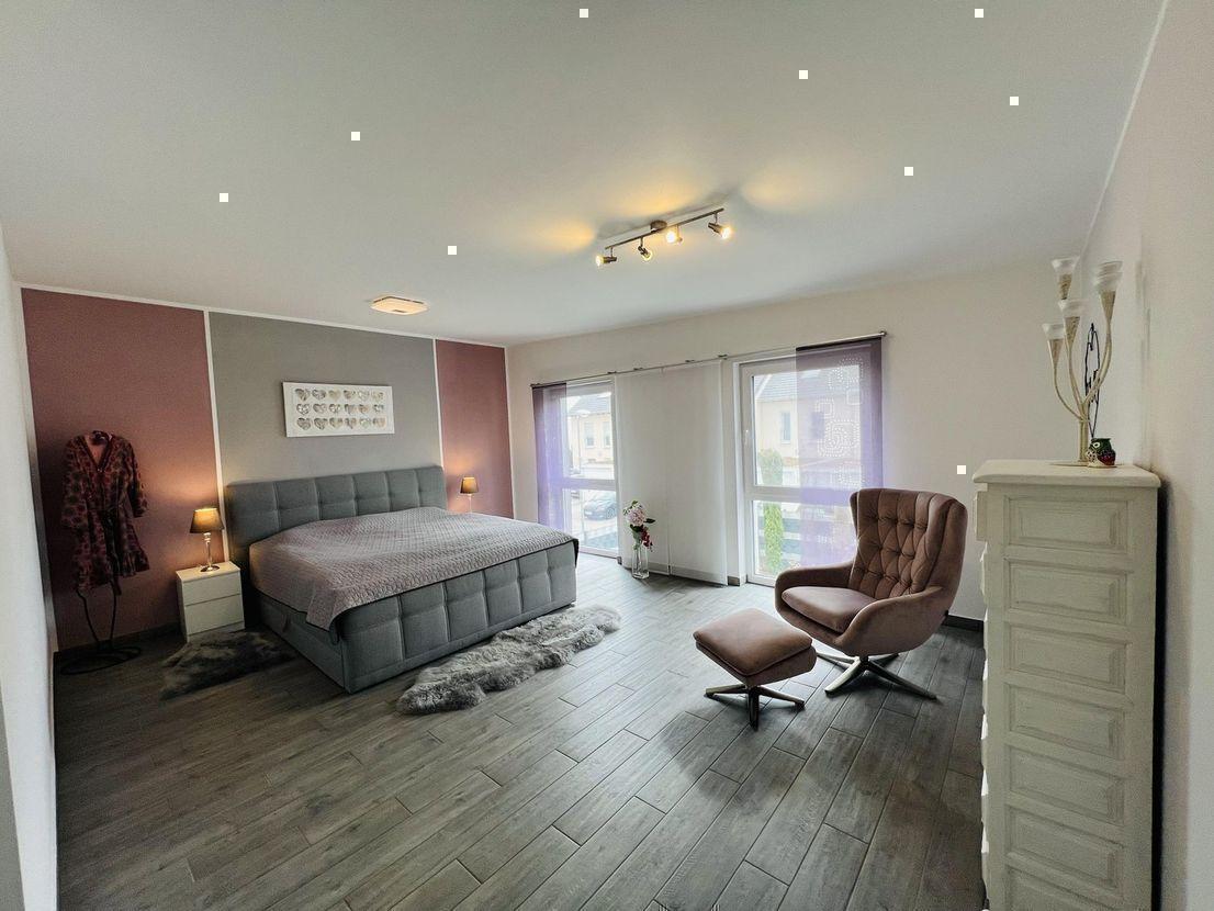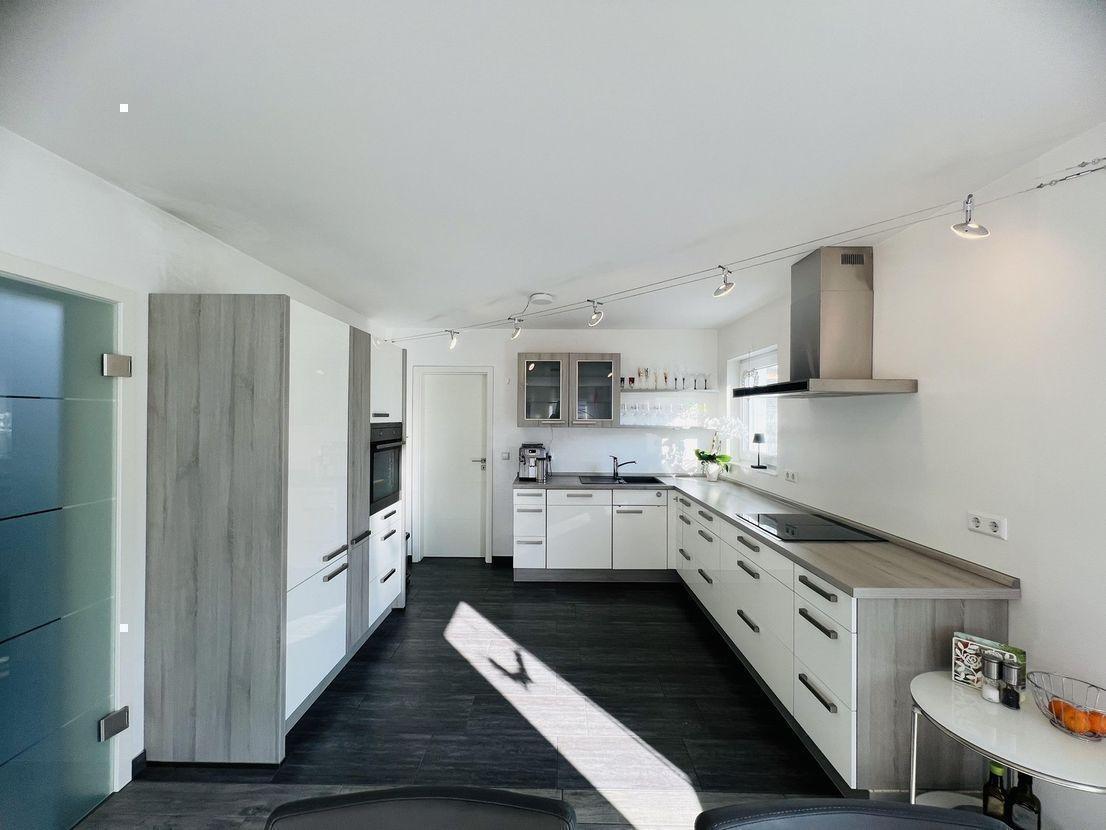 - Ein wunderschönes Architektenhaus in individueller und außergewöhnlicher Bauweise mit gehobener Ausstattung. Entdecke dein neues Zuhause zum Wohlfühlen, sogar mit möglicher Bauerweiterung. Schon bei der Gebäudeplanung wurde hier an alles gedacht, sorgfältig geplant und in hochwertiger Qualität umgesetzt. In deinem neuen lichtdurchfluteten zu Hause erwartet dich ein sehr großzügiger und einladender Eingangsbereich mit Galerie von 5 Meter Deckenhöhe, gleich nebenan lädt das große Wohnzimmer mit offener, moderner Küche und dem individuellen Essbereich zum Wohlfühlen ein, ebenso aus deiner Galerie heraus erreichst du zwei Schlafzimmer mit eigenem modernen und großzügigen Bad mit Steinbodendusche. Über die massive Holztreppe mit Edelstahl/Stahl Konstruktion kommst du ins Obergeschoss zu deiner Indoor Empore und geräumiger Diele, über die du zwei weitere Schlafräume erreichst und ein sehr großzügiges Bad, genieße hier deinen Wellnessbereich im Master Bad mit Infrarot Wärmekabine, Steinbodendusche, zwei grossen Waschbecken und tiefeingebauter Badewanne (im Estrich). Die 3-fach verglasten bodentiefen Sicherheit Fensterelemente von Fa. Schüco im gesamten Haus (auch mit Insektenschutzvorrichtung) inkl. den elektrischen Sicherheit Alu-Fenster Rollläden sorgen für viel Licht, Komfort und Sicherheit. Jeder Raum im EG verfügt über eine eigene private Terrasse mit elektrischer Markise oder mediterranem Alu Gartenpavillon für perfekten Sonnenschutz. Dieses Traumhaus mit Südwest Ausrichtung lässt die Sonnenstrahlen sogar bis spät in den Abend zum Genuss werden sowohl in jedem Raum, auf insgesamt 4 Garten Terrassen (1x Ostterrasse + 3x Südwestterrassen) als auch im grossen, pflegeleichten, wunderschönen, mediterranen und sonnigen Garten zum privaten Luxus Erlebnis werden. Der Garten verfügt darüberhinaus über die autom. Gartenbewässerung und einen Rasenmäher Roboter. Direkt vor der Hauseingangstür befinden sich eine Garage (mit 2 Zugängen vom Hof und Garten) und bis zu 3 PKW Stellplätze. Dein schönes zu Hause in massiver Bauweise mit WDVS, Energieklasse A (Energieausweis liegt vor) alles neuwertig und nach dem aktuellen stand der Technik, kein Renovierungsstau, mit Wärmepumpe und Fußbodenheizung, hochwertige Bodenfließen in Holzoptik, gedämmtes und begrüntes flachgeneigtes Dach (da dringt weder Kälte noch Hitze durch), Vorrichtung für PV-Solaranlage liegt bereits auf dem Dach, großem Hauswirtschaftsraum mit Zugang zu eigener Terrasse und zum Garten.