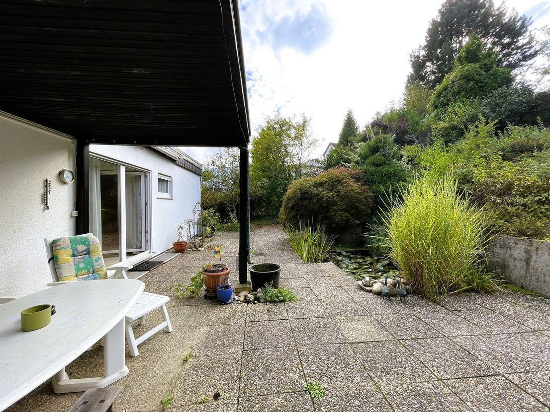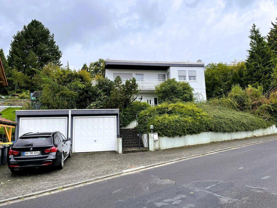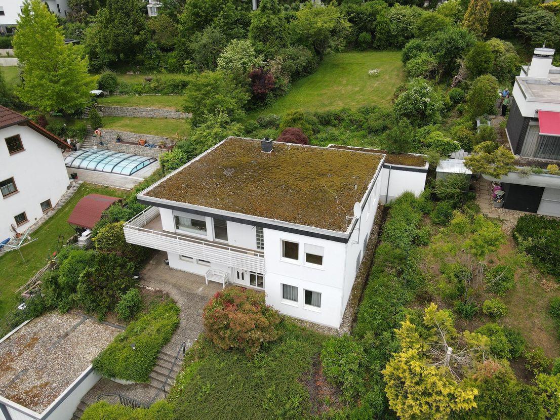 - Eine seltene Gelegenheit für Individualisten in bester Wohnlage: Das Anwesen befindet sich auf einem idyllischen, üppig grünen Grundstück mit einer Fläche von 1.044 m² und bietet eine Wohn-Nutzfläche von rund 220 m² auf 2 vollgeschossigen Etagen. Es ist klar strukturiert, großzügig geschnitten und zusammen mit den großen Fensterflächen ein architektonisches Statement der 70 er Jahre! Sie betreten das Haus im massiven Untergeschoss. Die große Eingangsdiele ist der zentrale Bereich, von dem aus Sie 3 (Kinder) Zimmer, Büro, Badezimmer, Technikraum, Garderobe, WC und einen Vorratsraum erreichen können. Das Untergeschoss ist hangseitig eingegraben, wobei sich hier nur die Nutzräume befinden. Alle anderen Zimmer sind freistehend mit Wohnraumfenstern. Über eine Treppe gelangen Sie in das geräumige, helle Obergeschoss in Fertigbauweise. Die große Diele bietet Platz für einen Essbereich neben der Küche und gibt durch eine breite Doppeltür den Blick frei in einen üppigen Garten. Wer gerne Zeit draußen in der Natur verbringt, wird sich hier besonders wohlfühlen! Die große Südterrasse mit elektrischer Markise, einem überdachten Freisitz und einem kleinen Teich ist ein traumhaftes "Draußen-Zimmer" und Sie können hier Ihren ganzjährigen Sitzbereich oder eine Außenküche unterbringen, um gesellige Abende mit Freunden und Familie zu verbringen. Hier schließt sich auch gleich der Geräteraum an, in welchem Sie Ihr Gartenequipment verstauen können. Das weitläufige Grundstück eröffnet vielfältige Möglichkeiten. Hobbygärtner finden Gelegenheit, sich zu entfalten.. Wenn das Wetter mal nicht mit spielt, lädt Sie das gemütliche, große Wohnzimmer mit umlaufendem Balkon und einem sensationellen Panoramablick zum gemütlichen Chillen ein. Außerdem befindet sich im Obergeschoss ein Schlafzimmer mit eigenem Duschbad. Hier genießen die Eltern Ihren komfortablen Rückzug! Abgerundet wird dieses Angebot durch eine Doppelgarage mit einem elektrischen und einem manuellen Schwingtor. Seit seiner Errichtung im Jahr 1971 hat das Gebäude mehrere Modernisierungen erfahren. Im Jahr 2000 wurde das Dach gedämmt neu abgedichtet und mit einer Attika versehen. Die Holz-Fenster und das Haustürelement sind in den letzten Jahren nach und nach ausgetauscht und gegen weiße Kunststoff Elemente mit Doppelverglasung ersetzt worden. Die Gas-Zentralheizung wurde im August 2023 erneuert und sorgt für eine effiziente Wärmeerzeugung. Eine Besichtigung empfiehlt sich, um das Potenzial und die Möglichkeiten dieser Immobilie vollständig zu erfassen. Kontaktieren Sie uns gerne für weitere Informationen oder zur Vereinbarung eines Besichtigungstermins.