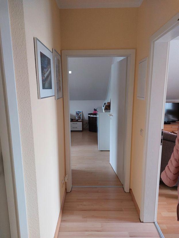 - Die lichtdurchflutete Wohnung liegt im 3. OG eines Mehrfamilienhauses mit insgesamt 8 Wohneinheiten und einem gemeinsamen Treppenhaus. Sie verfügt über zwei Balkone. Die 52 m² Wohnfläche sind aufgeteilt in jeweils einen Flur, ein Wohnzimmer (mit Zugang zum Balkon 1), ein Schlafzimmer, eine Küche (mit Zugang zum Balkon 2), ein Bad. Zur Wohnung gehört ein Kellerraum und ein PKW Stellplatz auf der hauseigenen Parkfläche.