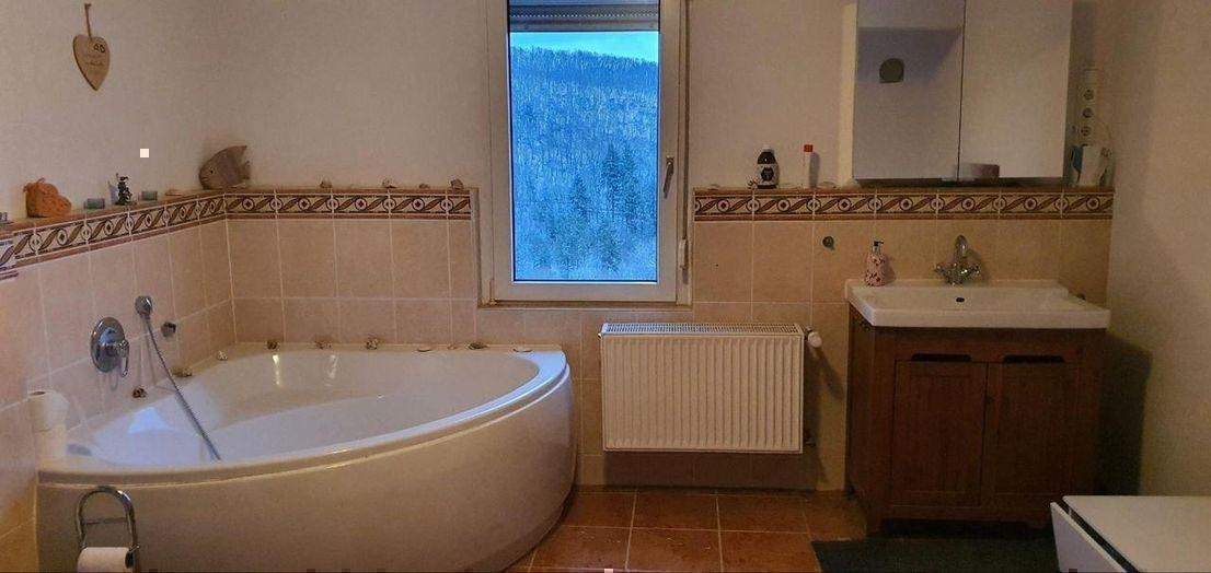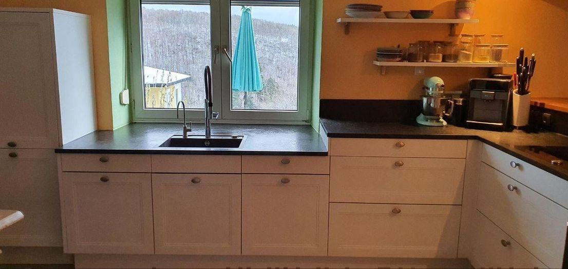 - Wohnen und leben, wo andere Urlaub machen! Perfekt für Selbstversorger! Sie möchten mit Ihren Tieren abgeschieden und im Einklang mit der Natur leben? Wir verkaufen unseren wunderschönen, sanierten Bauernhof in Waldrandlage mit traumhaftem Ausblick und absoluter Ruhe. Das Wohnhaus (Fachwerkhaus), Baujahr 1893, wurde seit 2013 liebevoll und umfassend saniert und wird möbliert verkauft. Angrenzend an das Wohnhaus befinden sich auf der einen Seite ein großer (Lauf-)Stall mit Zugang zur Weide und auf der anderen Seite eine große Scheune mit einer Lagerkapazität für ca. 50 Heuballen, den Traktor, Gabelstapler, einen Anhänger und vieles mehr. In der Scheune haben wir in den alten Kuhstall drei Pferdeboxen eingebaut, zwei davon sind sehr groß und reichen für jeweils zwei Pferde oder als Abfohlboxen. Angrenzend an die Scheune befindet sich eine Werkstatt und ein weiterer Raum, der als Lagerraum genutzt werden kann. Vom Stall aus gelangt man auf das angrenzende, 1,5 ha große Weideland, das in vier Weiden unterteilt ist. Hinter der Scheune befindet sich ein 15x15 m Reitplatz, der mit Weidepanelen eingegrenzt ist. Von den Weiden aus gibt es Zugang zu zwei befestigten Paddocks mit Unterständen und Heuraufen. Der Untergrund unter den Paddocks wurde geschottert, darauf wurden Paddockplatten verlegt und diese mit Sand verfüllt. Ein Paddock hat ca. 125 qm, der andere Paddock ca. 100 qm. Zwischen Reitplatz und Paddocks/Weiden liegt unser Waldgarten, in dem diverse Obstbäume gepflanzt sind (u.a. ein alter Apfelbaum, ein alter Birnbaum, Mispeln, Kirschen, Pflaumen, Esskastanien u.v.m) und sich unser Glasgewächshaus sowie Hochbeete für den Gemüseanbau befinden. Im Waldgarten wohnen auch unsere Hühner in einem 9 qm großen Hühnerhaus mit großem Auslauf sowie unsere Kaninchen in einem großen Gehege. In Laufweite von ca. 250 Metern liegen die übrigen drei Weiden, zwei davon sind mit Holzzaun und Litze eingezäunt und verfügen über Unterstände mit Paddockplatten und Heuraufen. Die Gesamtgrundstücksfläche liegt bei 4,5 Hektar, wozu auch ein kleiner Anteil Wald gehört. Zusätzlich können 3,3 Hektar Weideland langfristig vom derzeitigen Eigentümer dazugepachtet werden.