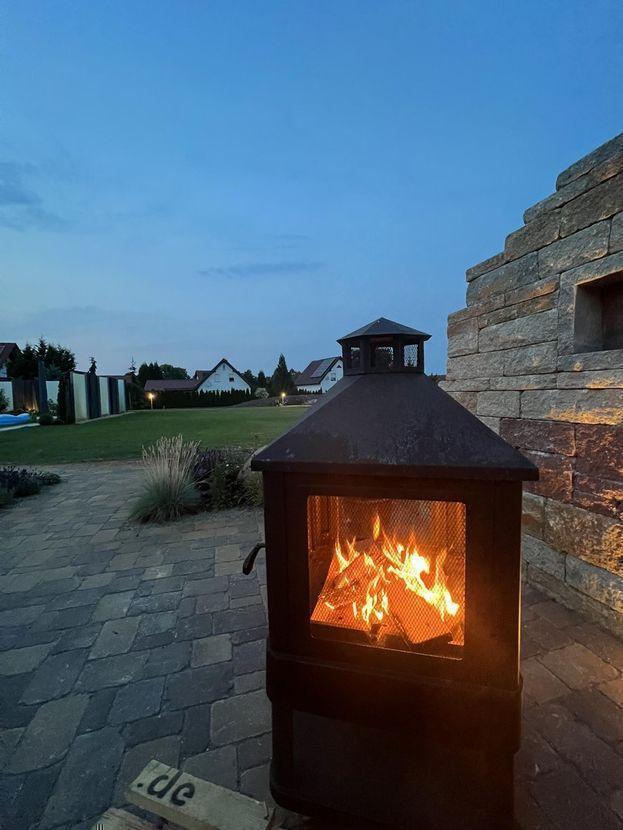 - Hier finden Sie Luxus Pur! Kommen Sie nach Weißkeißel und lassen Sie sich überraschen. Im Jahr 2017 wurde dieses wunderschöne Anwesen im ruhig gelegenen Örtchen Weißkeißel errichtet. Es befindet sich auf einem Grundstück von 3.194 m2. Auf einer Wohnfläche von ca. 192 m2 können Sie und Ihre Lieben sich wohlfühlen. Das Anwesen hat einen schön angelegten gepflegten großen Garten mit einem Grillhaus, zwei Brunnen, einem schönem Italienischer Innenhof wo Sie den Sommer in vollen Zügen genießen können. Auch gemütliche Abende mit Familie und Freunden können Sie dort verbringen und die idyllische Ruhe genießen. Im Erdgeschoß erwartet Sie ein großer Eingangsbereich mit Zugang zum großzügigen lichtdurchfluteten Wohnbereich mit Kamin für gesellige Abende. In der luxuriösen Küche mit Essbereich verwöhnen Sie Familie und Gäste. Die Einbauküche verbleibt im Haus. Vom Wohn- und Essbereich gehen Sie auf die großzügig geschnittene sonnige Terrasse mit Grillecke. Ebenfalls, vom Eingangsbereich gelangen Sie in das Badezimmer mit hochwertiger Sanitärausstattung, in das Gästezimmer, das Ankleidezimmer sowie in den Hauswirtschaftsraum und die Garage. Über eine edle Treppe erreichen Sie das Obergeschoß mit einer großen Galerie und Arbeitsbereich. Des Weiteren befinden sich im Obergeschoss ein großes Schlafzimmer, von dem aus Sie den großen Balkon begehen können und ein Badezimmer mit ebenerdiger Dusche sowie Badewanne. Alles ist mit viel Liebe zum Detail hergerichtet. Für die Kleinen erwartet Sie im Obergeschoss ein Kinderzimmer mit Schlaf und Spielecke sowie einem eigenen Badezimmer. Auch hier haben Sie einen wundervollen Blick in den Garten.