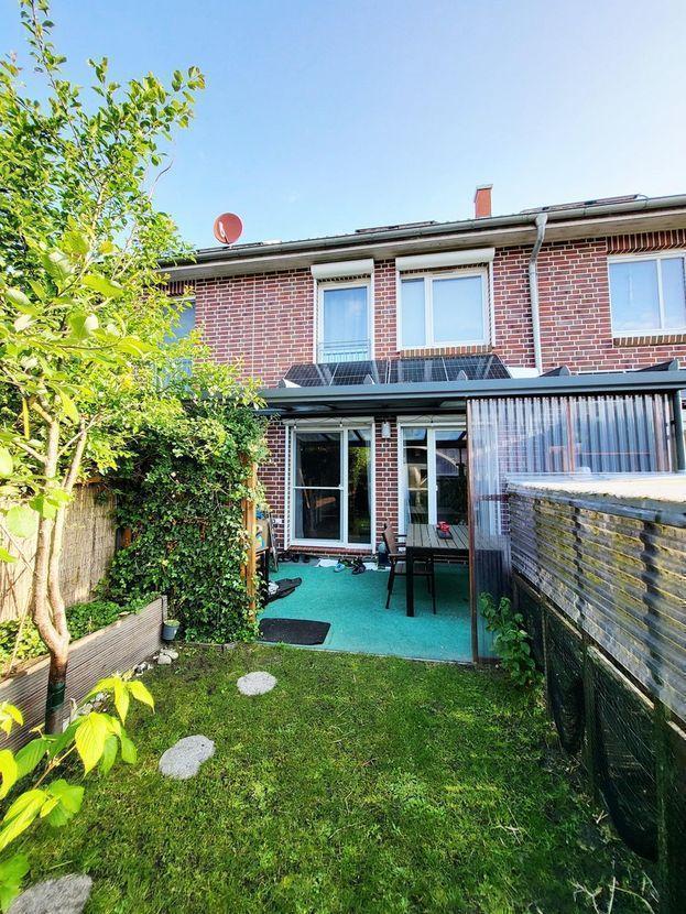 - Dieses in 2010 erbaute Reihenmittelhaus bietet Platz für die ganze Familie und befindet sich in einer Sackgassenlage ohne Durchgangsverkehr im Norden von Elmshorn. Es bietet mit 6 Zimmer auf 133 m² und einer Nutzfläche (Keller) von 49 m² viel Platz zum Entfalten. Das Haus hat durch die solide Bauweise und Dämmung eine optimale Energieeffizienz von A, welche auch durch Solarthermie und Photovoltaik unterstützt wird. Zum Haus gehören ein Carport und ein auf Süden ausgerichteter Garten samt Gartenhaus. Hier lässt es sich im Sommer gemütlich entspannen. Sollte das Wetter ungemütlicher werden, bietet die mit Glas überdachte Terrasse Schutz (wurde 2020 nachgerüstet). Im Erdgeschoss befindet sich neben dem Gäste-WC und dem Flur die offene Küche mit Essbereich und Wohnzimmer. Während das Gäste-WC, der Flur und die Küche gefliest sind, ist im übrigen Bereich des Erdgeschosses Parkett verbaut. Die Fußbodenheizung sorgt in der kalten Jahreszeit für wohlige Wärme. Ober- und Dachgeschoss wurden 2021 renoviert. Hier befinden sich im Obergeschoss drei Schlafzimmer und ein Badezimmer mit Badewanne und Dusche. Im Dachgeschoss befindet sich neben zwei hellen Schlafzimmern auch die Gastherme mit einem Warmwasserspeicher von 300 Liter. Die Heizung- und Solarthermieanlage wurde regelmäßig gewartet. Die Rollläden bieten nicht nur Schutz vor Hitze und Kälte, sondern sind auch im Smart Home eingerichtet, so dass einige Automatisierungen den Alltag erleichtern. Die Video-Gegensprechanlage ermöglicht ein einfaches Kommunizieren per Smartphone, auch von unterwegs. Schnelles Internet ist per Glasfaseranschluss (seit 2020) vorhanden und durch die optimale WLAN Ausleuchtung der Accesspoints überall stabil vorhanden. Die Videoüberwachung der Hauseingänge und der Fensterkontakte bilden einen soliden Einbruchschutz. Ein Balkonkraftwerk wurde 2022 zusätzlich neu installiert. Der vollständig geflieste Keller bietet nicht nur viel Stauraum, sondern auch zahlreiche Möglichkeiten für Hobbys. Neben einem Vorratsraum gibt es hier noch zwei weitere Räume, die vielseitig genutzt werden können. Das Haus präsentiert sich in einem neuwertigen und äußerst gepflegten Zustand und freut sich darauf, von neuen, netten Eigentümern willkommen geheißen zu werden.