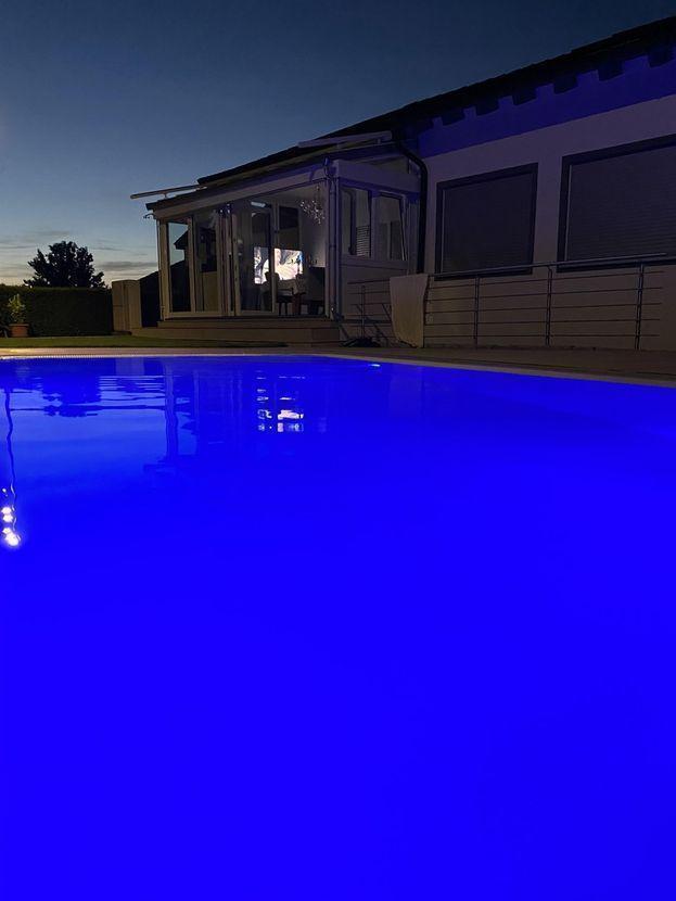 - Bei dem Einfamilienhaus mit großer ELW handelt es sich um eine attraktive Immobilie mit Exklusiver Ausstattung, die sich durch seine gehobene Innenausstattung auszeichnet. Das Haus wurde 1991 gebaut und 2018/2020 saniert. • Hochwertige Einbauküche • Hochwertige großformatige Fliesen im Wohnbereich • Fußbodenheizung EG mit Raumthermostat • Kaminofen mit Steuerung • Einbruchhemmende Fenster und Türen • Elektrische Rollläden mit Steuerung • Bodenebene Dusche • Große Badewanne • Videosprechanlage mit Fingerprint • Wintergarten mit Falttüranlagen und Beschattung • Garage mit Torantrieb • Überdachter Salzwasser Außenpool mit Wärmepumpe beheizt • Gartendusche • Großes Gartenhaus • Luftwärmepumpe mit Röhrenkollektoren für Warmwasser • ELW 76m² ist vermietet