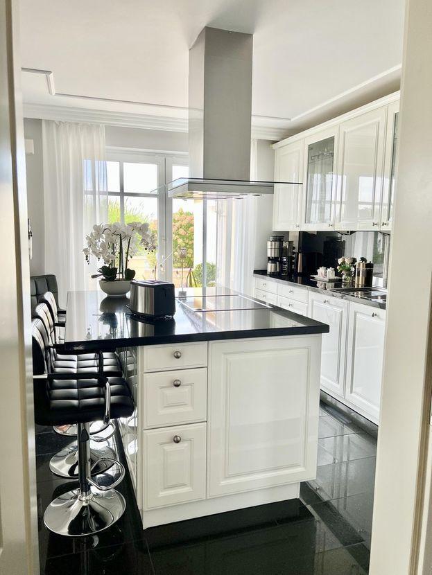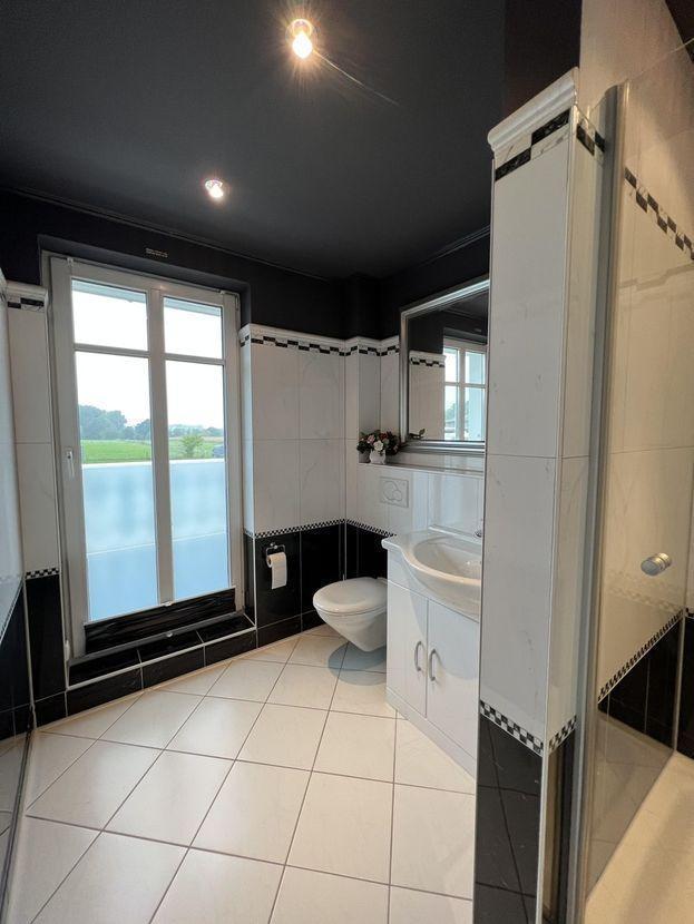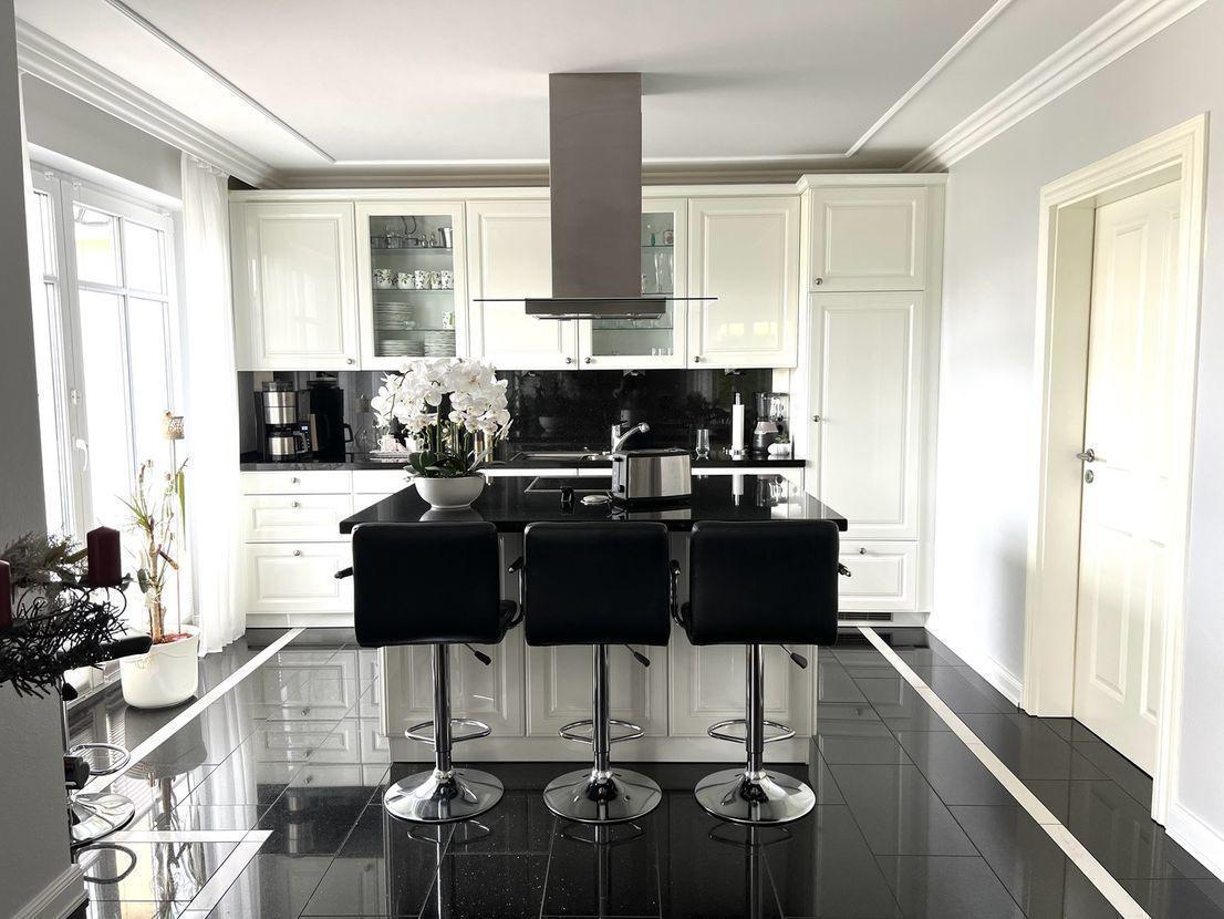 - Sie suchen kein Haus von der Stange, sondern ein exklusives und energetisch großzügiges Einfamilienhaus in einer naturverbundenen Umgebung und brauchen trotzdem eine gute Anbindung an die Großstadt, dann sind Sie hier genau richtig. Das exklusive Einfamilienhaus präsentiert sich in einem äußerst gepflegten Zustand und befindet sich nicht weit von der Stadt Bad Oldesloe, in einer ruhigen Sackgassenlage (Zone 30). Das wunderschön eingefriedete Grundstück von 868 qm mit angrenzenden Feldern besticht durch seine traumhafte Lage. Auf dem Grundstück befindet sich eine ca. 80 qm große West-Terrasse im toskanischen Stil, welche nicht einsehbar ist. Das Haus besticht mit seinen 7 Zimmern in hochwertiger Ausstattung. Die Wohn- und Nutzfläche beträgt ca. 270 qm und lässt genügend Raum für die Familie, Gäste, Beruf und Hobbys. Das großzügige Einfamilienhaus wurde im Jahr 2007 in massiver Bauweise als KfW-40 Energiesparhaus gebaut. Die Dachrinnen sind aus Kupfer, dass Dach mit schwarz glasierten Dachpfannen. Alle Kunstofffenster mit Sprossen verfügen über eine 3-Fach Verglasung, die Außenwände sind mit einer Dämmung von 16cm (ESP WLG 035) gedämmt, was der Energieeinsparung zugute kommt. Trotz der großen Wohnfläche ist das Haus in seinen Energiekosten günstig. Im Hauswirtschaftsraum befindet sich die Gaszentralheizung der Marke Viesmann (Brennwerttechnik), sowie alle weiteren Anschlüsse. Alle Fenster im Erdgeschoss und im 1. Obergeschoss zum Balkon hin sind abschließbar. Der Balkon lädt abends zum verweilen ein, von dort aus hat man einen wunderschönen Weitblick auf die Felder und Wiesen und den Sonnenuntergang. Die Doppelgarage von ca. 43 qm bietet viel Platz. Das vordere Garagentor lässt sich elektronisch öffnen und das hintere Tor zum Garten manuell. In der Garage befinden sich 8 Steckdosen, ein Waschbecken mit warm und Kaltwasser-Anschluss, sowie einen Außenwasserhahn mit separater Wasseruhr für den Garten . Durch den einladenden offenen Eingangsbereich in Venezianischer Spachteltechnik an den Wänden, präsentiert sich die offene Empore mit den weißen Holztreppen bis ins Dachgeschoss als hell und freundlich. Der gesamte Fußboden im Erdgeschoss und der Flur im 1. Obergeschoss wurde mit großformatigen Granitplatten (Galaxy) und teilweise mit weißen Marmor verlegt. Im Hauswirtschaftsraum, der angrenzend zur Garage liegt, wurde der Fußboden mit einer grauen Granitplatte verlegt. Alle weiteren Fußböden wurden in Dielenoptik/ Laminat verlegt, außer im Schlafzimmer mit Teppich. Der über 55qm große Wohn/ Essbereich lädt mit seinen 4 doppelflügeligen Terrassenfenster und Kaminofen, sowie einem offenen Kochbereich mit einer hochwertigen ALNO-Hochglanz-Einbauküche mit Kochinsel und Tresen zum entspannen ein. Die Arbeitsplatten, sowie die Rückwand und Kochinsel wurden ebenfalls mit einer Granitplatte (Galaxy)ausgestattet. Angrenzend zur Küche befindet sich der große HWR (ca. 19,26 qm) mit Außentür zur Garage, wodurch sich bequem die Einkäufe ins Haus schaffen lassen. Im EG befinden sich das Gäste-WC, Büro, Wohnzimmer/ Esszimmer/ Küche sowie HWR Im 1. Obergeschoss, drei weitere Wohnräume, sowie ein Voll- und Duschbad. Im 2. Obergeschoss, 2 weitere großzügige ausgebaute Räume und eine Abseite vom Flur aus als Stauraum. (Ein Aufteilungsplan über den ausgebauten Dachboden liegt nicht vor)