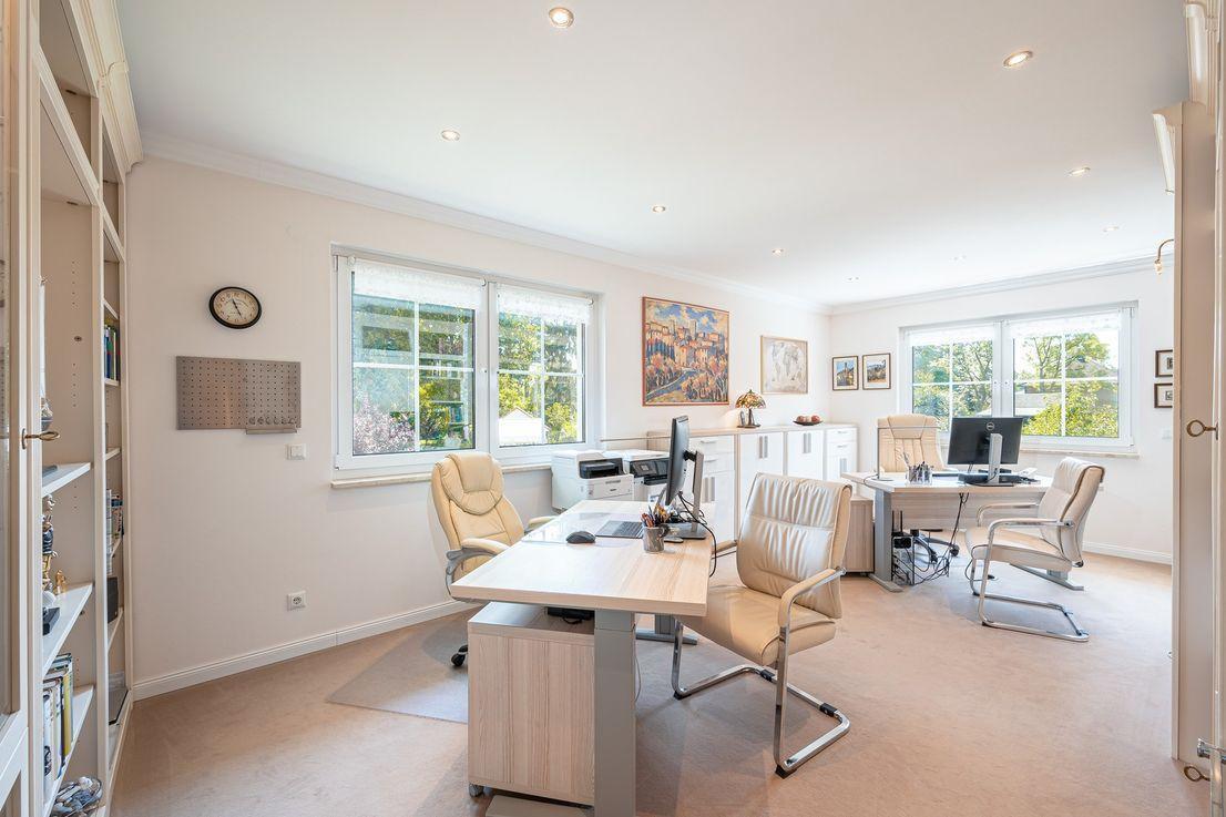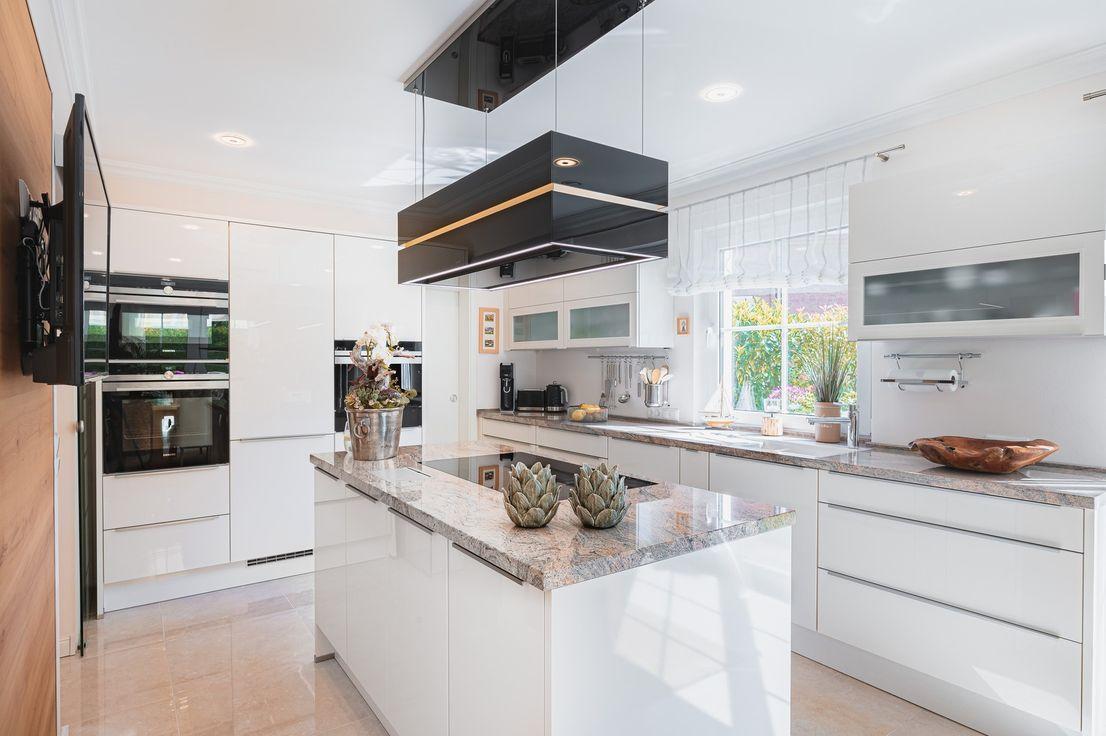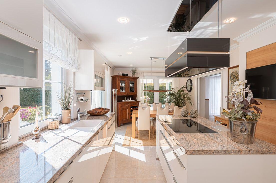 - Die hier angebotene, lichtdurchflutete, moderne Villa im mediterranen Stil wurde im November 2016 vollendet. Das Gebäude ist in seiner Architektur perfekt durchdacht, von hohem Wohnkomfort und offen angelegt. Es verfügt über 215 m² Wohnfläche und 60 m² Nutzfläche, auf einem sehr gepflegten, parkähnlichen Grundstück mit insgesamt 824 m² gelegen. Die Wohn- und Nutzfläche verteilt sich auf vier Zimmer, wobei die beide großen Zimmer im OG zur Teilung geeignet sind, einer großen Küche mit Vorratsraum, einem Bad mit Wanne und Dusche, einem Bad mit Dusche sowie einem Gäste-WC. Die großzügigen Wohnbereiche verbindet, eine im modernen Design, freitragende Massivholztreppe in zeitgemäßem Materialmix (Holz/Stahl/Glas) und eine Galerie. Das Dachgeschoss ist teil-ausgebaut, begehbar und als Abstellraum sehr gut geeignet. Dieser kann bei Bedarf ausgebaut werden. Zu den Highlights gehört der ca. 60 m² große Wohn-/Essbereich mit doppelflügeliger Schiebetür und einer sehr hochwertigen offenen Einbauküche. Im Garten laden Sitzplätze in allen Himmelrichtungen, zum entspannten Verweilen ein. Abgerundet wird dieses besondere Angebot durch eine automatische Garten-Bewässerungsanlage, eine Photovoltaikanlage und einem Doppel- Stahl-Carport mit zwei PKW-Stellplätzen mit elektrischem Einfahrtstor und Fernbedienung. Verkaufswertgutachten vorhanden! Das Objekt eignet sich auch als Anlageobjekt!