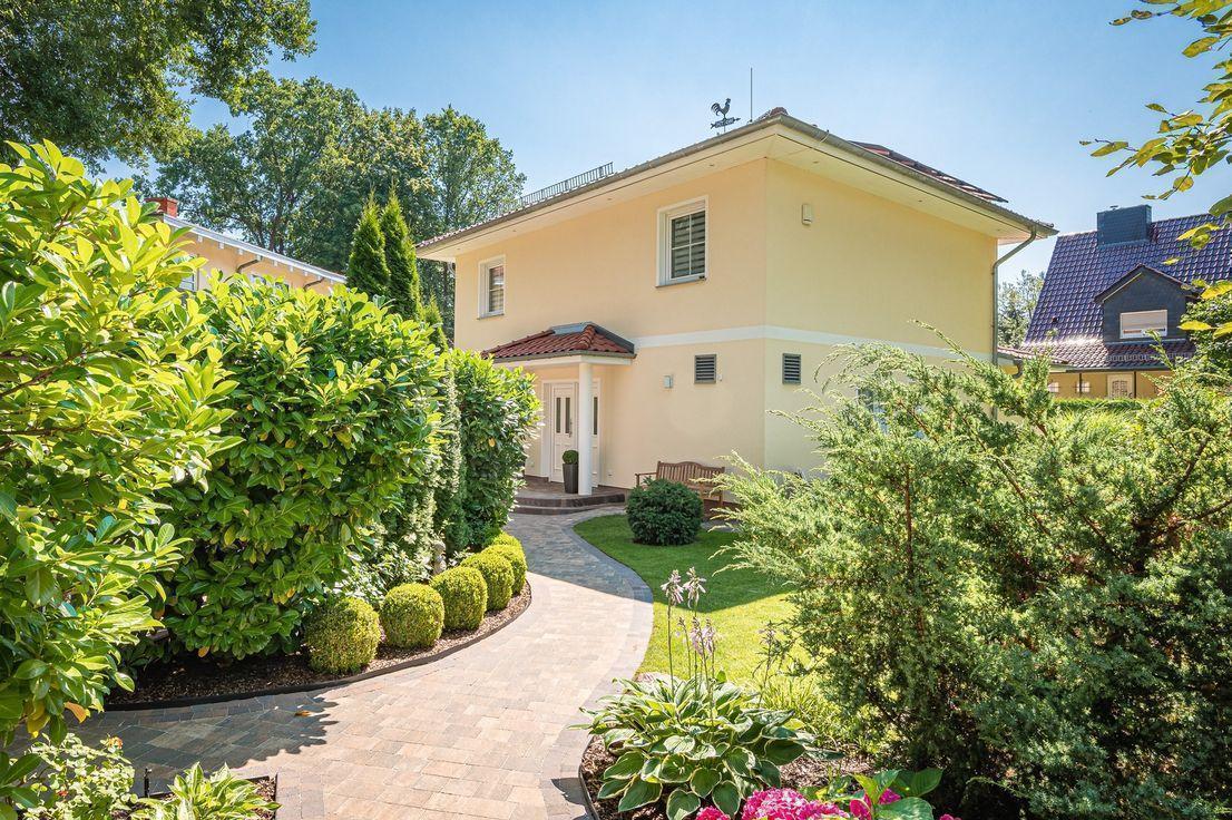 - Falkensee ist mit seinen ca. 45.000 Einwohnern eine der begehrtesten Wohnlagen direkt an der Stadtgrenze zu Berlin und zu Dallgow-Döberitz mit ca. 9.000 Einwohnern. Das hier angebotene Anwesen befindet sich in einer der begehrtesten Wohnlagen Falkensees, im Ortsteil Finkenkrug, in einer nur vom Anliegerverkehr befahrenen, sehr ruhigen Straße. Die Nachbarschaft wird durch die Bebauung mit repräsentativen Villen, klassischen Einfamilienhäusern und exklusive Stadtvillen mit gewachsenen Gärten geprägt. Wald und Wiesen rahmen diesen beschaulichen Stadtteil ein. Wer hier arbeitet oder wohnt, schätzt die grüne Umgebung sowie den hohen Freizeitwert desStadtteils bei gleichermaßen sehr gut ausgeprägter Infrastruktur. Das Grundstück liegt ca. 10 Gehminuten vom Bahnhof Falkensee-Finkenkrug und 5 Autominuten von der Innenstadt von Falkensee entfernt. Falkensee ist sehr vielfältig. Es gibt Einkaufsmöglichkeiten aller Art, sowie Ärzte in allen Fachrichtungen, Banken, Post, Kino und Restaurants. Es gibt mehrere Kitas und Schulen, z.B. die Europa- Schule, Gymnasium Vicco-von-Bülow und die Gesamtschule Immanuel Kant, die alle gut erreichbar sind. Zentral, ruhig, verkehrsgünstig und grün! Nicht umsonst zählt Falkensee zu den absoluten Top-Lagen unserer Zeit! Vom Regionalbahnhof Falkensee- Finkenkrug (P+R) fährt man mit der Regionalbahn in ca. 20 min. bequem in die Berliner City und zum Berliner Hauptbahnhof, 60 min benötigen Sie direkt zum Flughafen BER, mit dem Auto in ca. 15 Min. in die Spandauer Innenstadt. Durch das hervorragend ausgelegte Straßenverkehrsnetz erreicht man die Berliner City, mit dem Auto, in weniger als 25 Minuten. Dank der Bundesstraße 5 in unmittelbarer Nähe, erreichen Sie auch das Autobahnnetz in kurzer Zeit. ÖPNV - Anbindung: Regionalbahnen RB 14, RB 10, RE 8, RE 2 (z.B. 25 min. bis Berlin Hbf) Berlin Stadtgrenze: 7,5 km Berlin Zentrum: ca. 25 km Potsdam: ca. 25 km Designer -Outlet-Center B5: ca. 10 km Shopping-Center HavelPark Dallgow: ca. 3,1 km Autobahnanschluss: 11 km