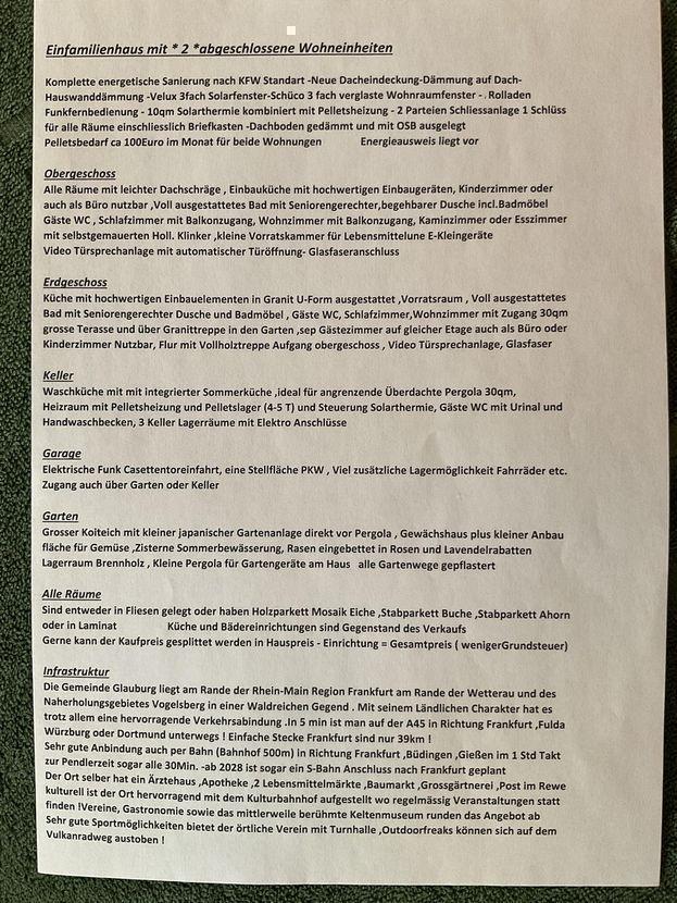- Heizungsart: Zentralheizung Energieträger: Holzpellets Ab 1.3.2026 geht das Haus in die Hände eines Immobilienmaklers was den Preis erheblich verteuern wird ! ! Makleranfragen nicht erwünscht. Nach § 7 UWG sind unaufgeforderte Kontaktaufnahmen durch Makler ohne ausdrückliche Einwilligung des Empfängers verboten! ohne-makler (OM) ist weder Anbieter noch Vermittler der Immobilie. OM betreibt eine Plattform für Immobilieneigentümer, die unter anderem die gleichzeitige Veröffentlichung einzelner Inserate auf mehreren Immobilienportalen ermöglicht. Die Inhalte dieser Inserate werden ausschließlich von Dritten verantwortet. Für die Richtigkeit, Vollständigkeit oder Rechtmäßigkeit der Angaben übernimmt OM keine Haftung. Hinweise auf mögliche Rechtsverstöße können jederzeit gemeldet werden und werden nach Prüfung umgehend bearbeitet.