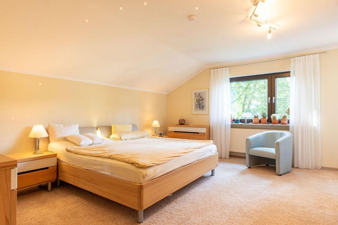 - Das Gebäude befindet sich auf einem großzügigen, eingewachsenen Grundstück, welches Ihnen und Ihrer Familie viel Raum bietet. Ob Blumenstauden, Hochbeete für die Gemüsezucht oder Platz für die Kinder zum Spielen: Auf 1041 Quadratmetern ist alles möglich! Zum Genießen und Entspannen laden auch die drei teilweise überdachten Terrassen, oder der große Südbalkon mit elektrischer Markise ein. Diese lichtdurchflutete Immobilie bietet auf ca. 330 Quadratmetern Wohnfläche, verteilt auf drei Etagen, mit bis zu 6 Schlafzimmern und 3 Bädern viel Platz. Eine Nutzung als klassisches Einfamilienhaus, Mehrgenerationenhaus, Einfamilienhaus mit vermieteter Wohnung im Souterrain oder Wohnen & Arbeiten unter einem Dach ist denkbar. Das Erdgeschoss besticht mit ca. 152m² Wohnfläche. Die große Küche mit Essbereich bietet ausreichend Platz für kulinarische Kreationen und kreative Kochabende. Ein Highlight ist das große Wohnzimmer mit Eichenholzparkett und schönem Buderus Kaminofen. Durch die leichte Hanglage wirkt das Wohnzimmer leicht erhöht und erlaubt so kaum Einblick von der Straßenseite. Die übergroßen Panoramafenster ermöglichen einen herrlichen Blick in den weitläufigen Garten. Ebenfalls im Erdgeschoss befindet sich das leicht abgesetzte Hauptschlafzimmer mit Vollbad. Das Haus ist voll unterkellert und bietet dadurch genügend Stauraum und Räume um sich entfalten zu können. Im Untergeschoss befinden sich ein Fitnessbereich und ein weiterer wohnlicher Raum, die beide durch eine Abböschung viel Tageslicht erhalten. Dieser Bereich lässt sich auch als abteilbare 2-Zimmer Einliegerwohnung oder gewerblicher Bürobereich nutzen. Ebenfalls im Keller befindet sich das still gelegte Schwimmbad mit großem Fenster und Wand aus Solnhofener Kalkstein-Platten. Zur Immobilie gehört des Weiteren eine große Doppelgarage mit elektrischen Garagentorantrieben, ein Carport sowie drei Stellplätze. Das Haus ist mit der Garage verbunden und Sie gelangen trockenen Fußes mit Ihren Einkäufen ins Haus. ! Ausdrücklich nur von Privat - bitte keine Makleranfragen!
