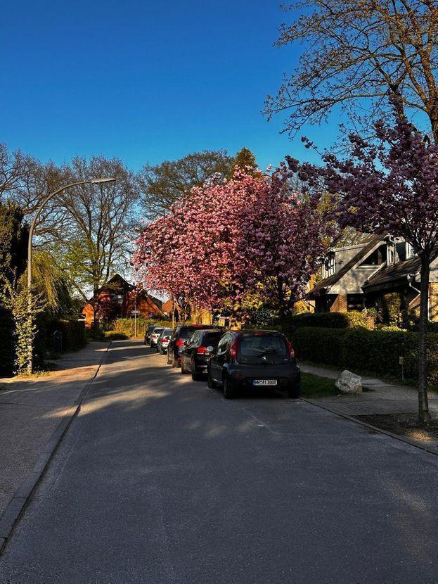 - Ruhige Wohnstraße mitten im Zentrum Poppenbüttels mit traumhaften Kirschbäumen, die dieses Jahr zu Ostern blühen. Überwiegend Einfamilienhäuser. Nur ca. 10 Gehminuten ins Poppenbüttler Zentrum (Poppenbüttler Markt) mit Ärzten, Edeka/Aldi/Budnikowsky, Apotheken und Restaurants. Diverse Schulen in Fahrrad- und Fußwegentfernung. Je 5-6 Gehminuten zu den Bushaltestellen 176/178/276, die Richtung S-Bahnhof Poppenbüttel fahren. 10 Minuten mit Auto oder Bus ins bekannte Alster Einkaufs Zentrum. 10 Gehminuten zum Alsterwanderweg für beste Naherholungsmöglichkeiten. Poppenbüttler Sportverein, Tennisverein und Golfplatz in unmittelbarer Nähe. 20 Autominuten zum Flughafen. Infrastruktur (im Umkreis von 5 km): Apotheke, Lebensmittel-Discount, Allgemeinmediziner, Kindergarten, Grundschule, Hauptschule, Realschule, Gymnasium, Gesamtschule, Öffentliche Verkehrsmittel