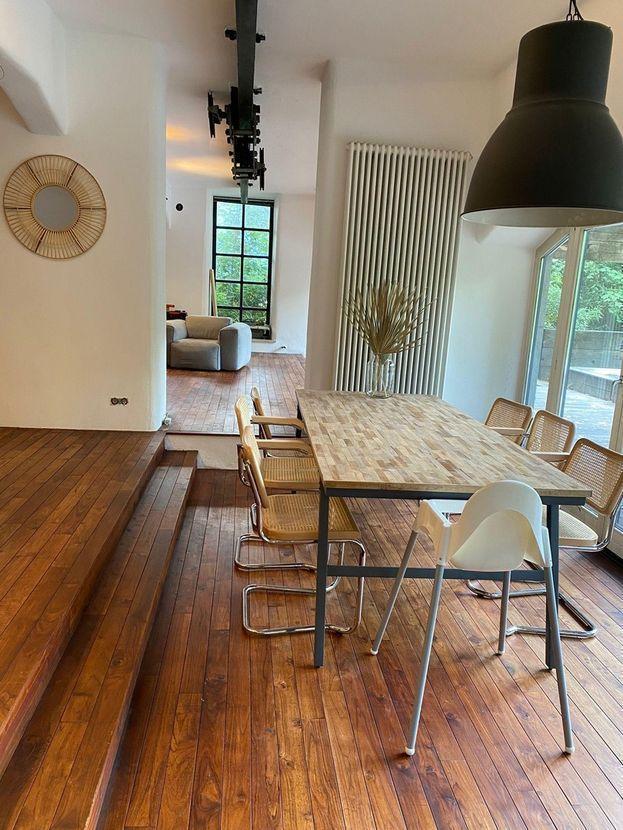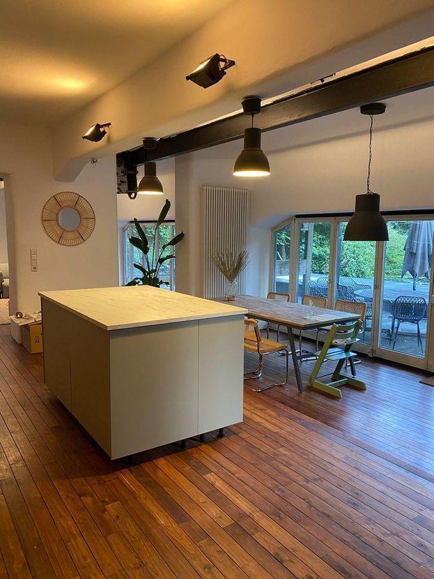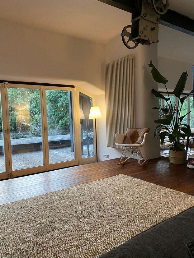 - Ein absolut außergewöhnliches Einzelstück! Dort, wo sich der Moersbach zum "Repelner Meer" verbreitert, um anschließend durch den angrenzenden Jungbornpark zu fließen - wo Kormorane und Fischreiher jagen und rasten, umgeben von altem Baumbestand - liegt direkt am Wasser, auf einem 1.651 m² großen Grundstück, das alte Pumpenhaus. Einst diente diese Pumpstation der Gewässerregulierung, um das Umland vor Überschwemmungen zu schützen. Als Pumpenhaus der "1. Generation" wurde das Gebäude aus Sicherheitsgründen äußerst massiv gebaut - mit dicken Wänden und einer 5 m starken Grundplatte. Obwohl es einer rein funktionalen Nutzung diente, verzierte man den Baukörper mit schlichter Ornamentik in beeindruckender Formensprache der 1920er-Jahre. Das 1927 fertiggestellte Industriegebäude wurde im Jahr 2002 aufwändig zu einer wunderschönen Wohn- und Gewerbeimmobilie umgebaut. Dabei wurde das charmante, industrielle Erscheinungsbild der Räume und der Außenansicht sehr sensibel erhalten. Der Wohnbereich mit einer Gesamtfläche von 222 m² und einer Deckenhöhe von 3 m bietet auf zwei Ebenen die Möglichkeit, den herrlichen Blick auf das Gewässer zu genießen. Der sehr geräumige, offene Wohnraum im Sockelgeschoss eröffnet über eine 12 m breite, komplett zu öffnende Fensteranlage den Blick auf die direkt an der Wasserfläche gelegene, ca. 100 m² große Terrasse und die Naturidylle des "Repelner Meers". Im Erdgeschoss lässt sich dieser Ausblick auch von einem 25 m² großen Balkon aus erleben. Im Obergeschoss befindet sich ein ca. 86 m² großer Gewerberaum mit Loftcharakter und einer lichten Deckenhöhe von 4 m. Seine sechs, jeweils 2 m hohen Fenster sind ebenfalls zum Wasser hin ausgerichtet. Dieser lichtdurchflutete Raum mündet in die ca. 224 m² große ehemalige Pumpenhalle mit einer lichten Raumhöhe von ca. 14 m im First - ein stimmungsvoller Raum mit hervorragender Akustik, der sich ideal als Ausstellungs- oder Konzertraum oder für Events aller Art eignet. Die unter der Halle befindlichen Kellerräume mit einer Gesamtfläche von 160 m² bieten viel Lager- und Stauraum. Mit einer Deckenhöhe von 7,5 m bestehen zudem Möglichkeiten zur erheblichen Erweiterung. Das Grundstück bietet durch seine Großzügigkeit - neben einer großen Einfahrt mit 10 Stellplätzen - traumhafte Möglichkeiten zur Erholung und Entspannung. Schon das morgendliche Frühstück mit Blick auf den See lässt einen entspannt in den neuen Tag starten. Die Möglichkeit, in dieser Atmosphäre die Freizeit zu verbringen und bei Bedarf direkt von der Terrasse in den Natursee zu springen, hat man sonst nur im Urlaub. Weitere Erholung bieten der angrenzende Park oder der idyllische Wanderweg entlang des Moersbachs, der bis ins Stadtzentrum von Moers führt.
