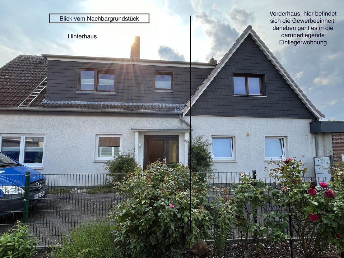 - Wir verkaufen unser Haus, da wir uns verändern möchten. Die Doppelhaushälfte steht auf einem ca 600 qm großen Eigenlandgrundstück und bietet je nach Anforderungen viele Möglichkeiten. Das Objekt ist wie folgt unterteilt: Ein Hauptwohnbereich im hinteren Teil des Hauses, den wir selbst bewohnen, bestehend aus Wohn-Esszimmer, Schlaf-, Gäste- und Ankleidezimmer, ca 110qm Wohnfläche zzgl. Terrasse vom Esszimmer im EG erreichbar und kl. Dachterrasse vorm Schlafzimmer im OG ( wir nennen diesen Teil Haupthaus). Auf jeder Etage befindet sich ein Bad, unten mit Dusche, oben ein Vollbad. Im EG kommt noch die Küche, sowie eine kleine Vorratskammer/Abstellraum hinzu. Im vorderen Bereich des Hauses gibt es eine Gewerbeeinheit, ca 40 qm, die derzeit vermietet ist. Kündigungsvereinbarung: 3 Monate beidseitig, ohne Angabe von Gründen. In der darüberliegenden Einzimmerwohnung, ebenfalls knapp 40 qm wohnt unser erwachsener Sohn. Die Hauptwohnung und die Einliegerwohnung werden bei Verkauf des Objektes frei übergeben. Zum Haus gehört weiterhin eine Doppelgarage, die von uns allein genutzt wird, eine großzügige Auffahrt, eine weitere Terrasse mit Grill und ein pflegeleichter nach Süden ausgerichteter Garten. Das Grundstück ist blickgeschützt und lädt zum Entspannen oder Grillen mit Freunden ein. Auch Kinder kommen hier auf ihre Kosten und haben genügend Platz zum Spielen. Es gibt 3 Küchen ( Haupthaus, Einliegerwohnung, Gewerbeeinheit) die aus den Jahren 2019 und 2021 sind. Die Gas Brennwerttherme ist aus Ende 2019 und jährlich gewartet worden. Im Haus sind 2 bzw. 3 fach verglaste Fenster verbaut. Auch gibt es einen zugelassenen und voll funktionsfähigen Kaminofen, der im Herbst und Winter für wohlige Wärme sorgt. Ein kleiner Keller steht ebenfalls zur Verfügung. Die Böden sind Design Belag und Echtholzparkett. Schauen Sie sich das Haus einfach nach telefonischer Absprache an, sehen Sie bitte davon ab, den Mieter zu kontaktieren, der KEINE AUSKUNFT geben kann.